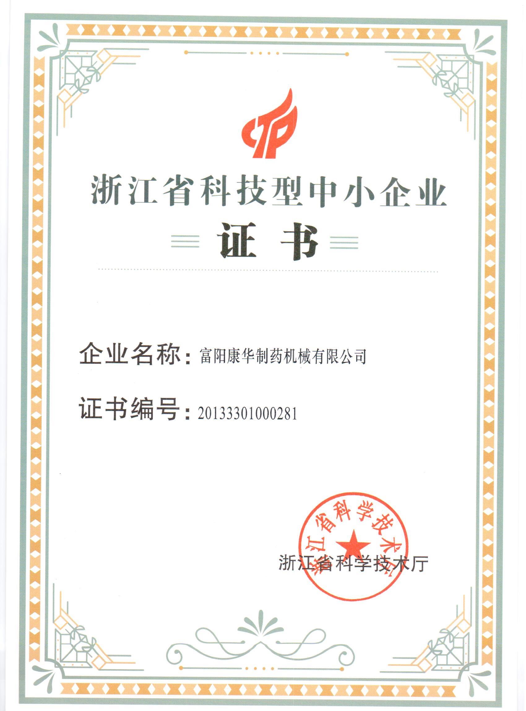 • 浙江省科技型中小企業(yè)證書(2013年)